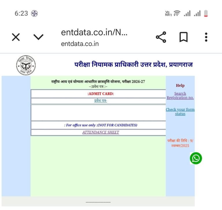 Team MSS NMMSE 2025-26 Admit Card Download Link प्रवेश पत्र ऑनलाइन डाउनलोड करें Click Here Admit Card NMMS 📢 UP...