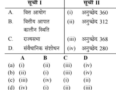 4. सूची-I को सूची-II के साथ सुमेलित करें