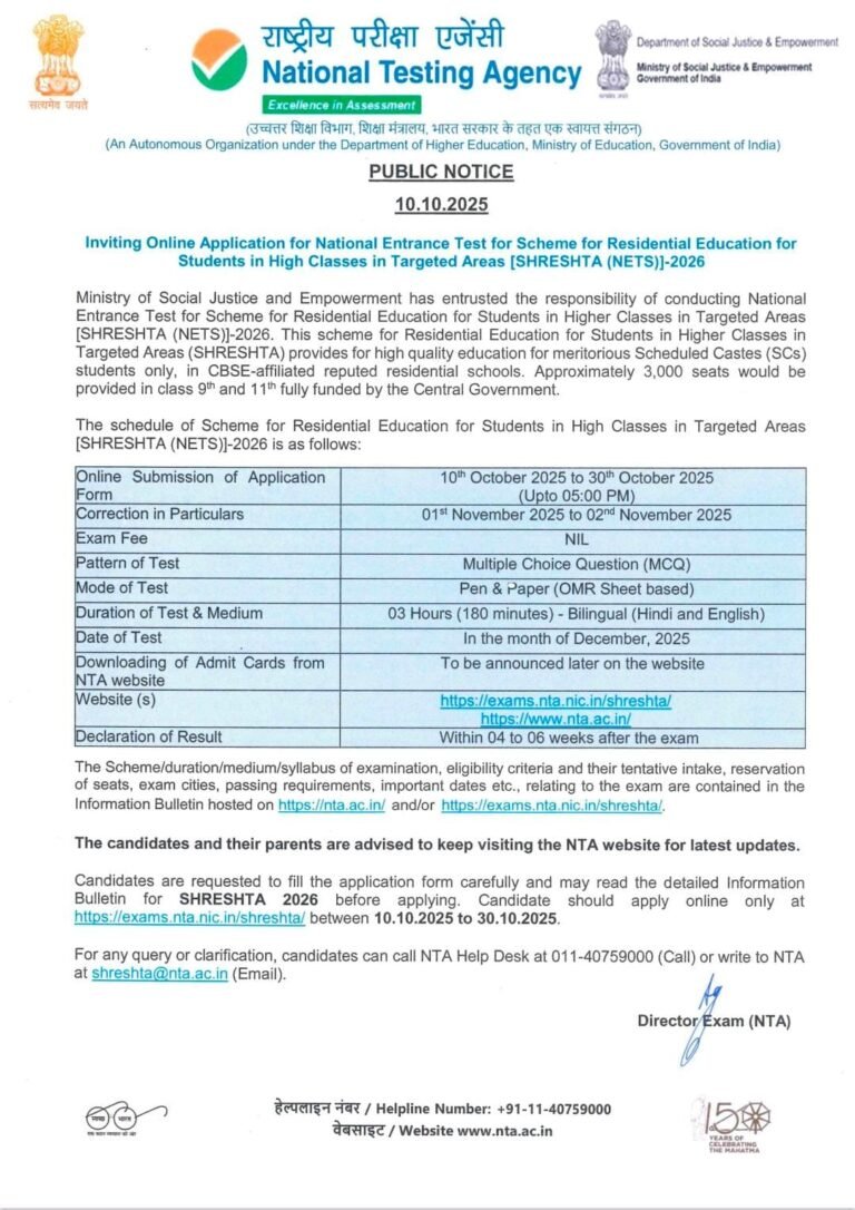 - आवेदक की आयु 10 से 12 वर्ष के बीच होनी चाहिए।